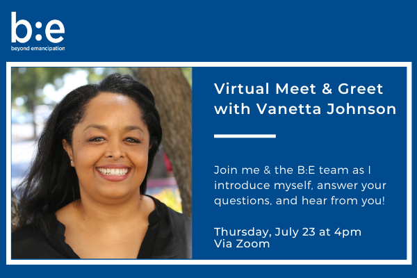 Please submit any questions you have for Vanetta or other questions to: development@beyondemancipation.org.